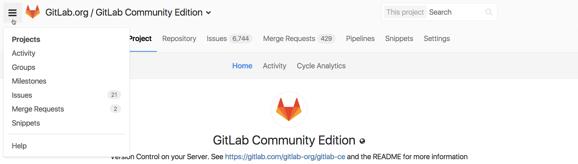 The number displayed on their right represents the number of issues and merge requests assigned to you.